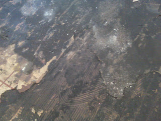 This is how it looks after the 8 layers of history and before the heat gun enabled removal of the last tar-gunk layer.